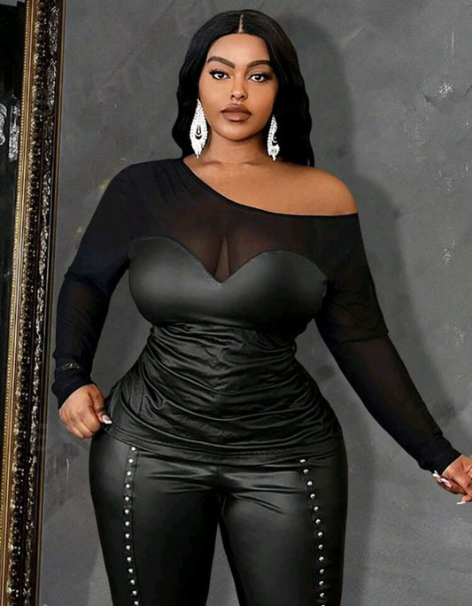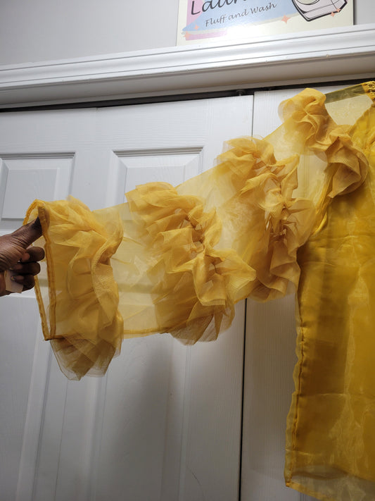 286 SIZE 1X SMOCK NECK RUFFLE SHEER SLEEVE TOP