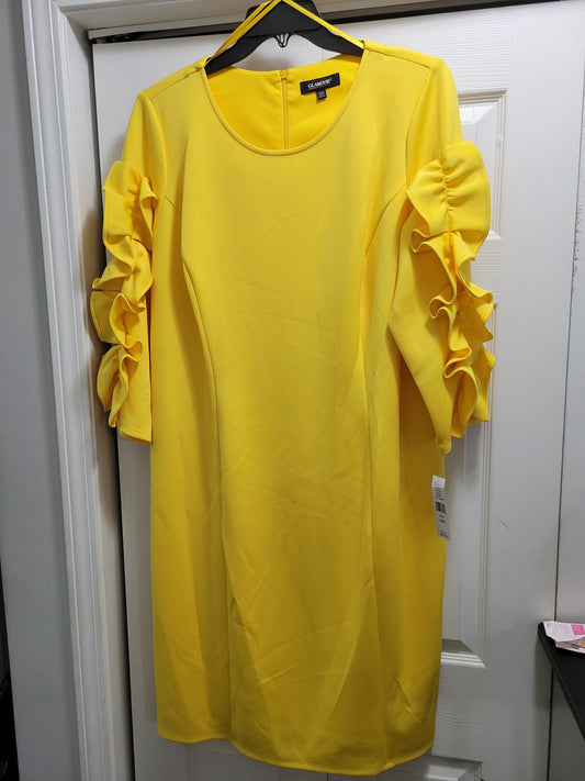 309 SIZE 20W YELLOW RUFFLE SLEEVE SCUBA DRESS